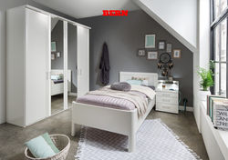 Bern is a traditional style bedroom collection available in either White , Rustic Oak or Dark Rustic oak , the hinge door wardrobes have a rounded profile edge with mirror door options and are available from 50cm up to 300cm and are 216cm high , there is cornices available and a matching bed frame and bedroom chests , bedsides , dressing benches and wall mirrors , the Bern range is ideal for the second or guest bedrooms.
