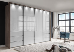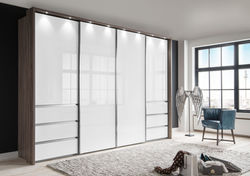 This stylish new VIP range is ideal for smaller rooms. Made up of a clever combination of fully accessible drawers with sliding robe space above, as well as full length sliding space, it offers consumers a practical, but clever space-saving solution. Wardrobes can be customised internally to feature very handy, combined drawers, tie, belt, trouser and shoe holders. There is also a wide choice of bedside cabinets, drawers, wall mirrors, lighting and bedsteads. Carcase finish options include new champagne, alpine white, Havana, and dark rustic oak, with doors also in glass in white, magnolia or (new) champagne.