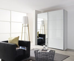 Gliding door wardrobe program Quadra convinces with a strong geometry, a striking design and a unique appearance. Available in an enormous variety of trendy colours, different materials and various combinations of front designs – Quadra offers a simply and stylish way of living. The coloured trims are the new eye-catching design features within the Quadra range for an elegantly inspired added style. Quadra comes flat packed and ready for easy self assembly. Further accessories like soft close dampers, extra shelves, internal drawers, extra hanging rails and led spotlights can be fitted. With Quadra you have the opportunity to create a wardrobe in different front outfits.